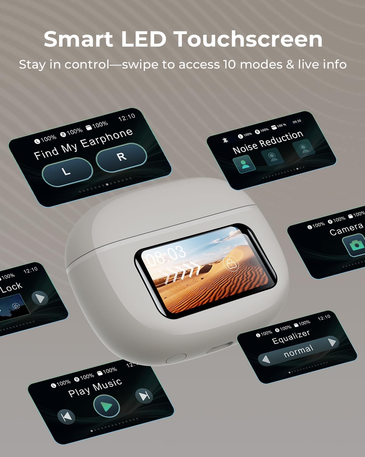 - Smart Touchscreen Case for Effortless Control: Our wireless earbuds come with a smart charging case that does more than just charge. Unlike traditional cases, it features a responsive touchscreen—skip tracks, adjust volume, manage calls, take remote photos, or locate your earbuds with just a tap or swipe. Packed with 10 powerful functions in one compact case, it’s the ultimate control hub. No phone needed, making everything more convenient and smarter.