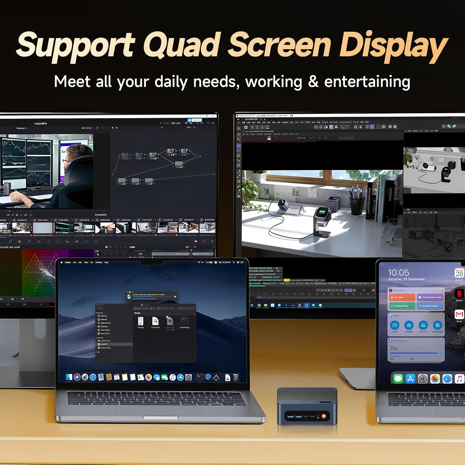 - 【Quad Screen Display】The Reatan A6 AMD Ryzen 7 Small PC Quad Screenn design,Supporting four different screen displays, the USB 4.0 port supports an 8K display resolution of7680x4320; four times the resolution of 4K, enabling more detailed and realistic images.