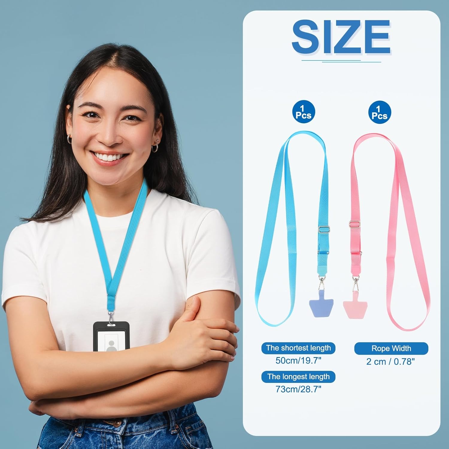 - Specification: Color: Pink/Blue; Material: Polyester; The longest length is 73cm/28.7 inches; The shortest length is 50cm/19.7 inches; Rope Width: 2 cm / 0.78 inch; Packing List: 2 Pcs x Smart Phone Lanyard; 2 x Phone Patches.