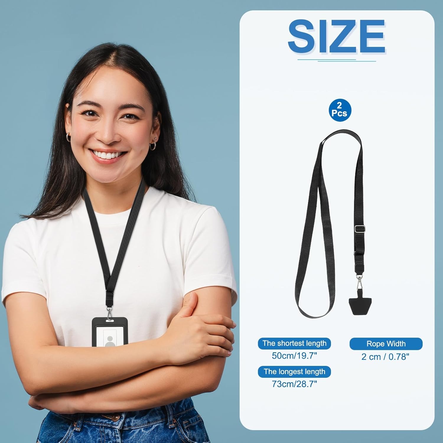 - Specification: Color: Black; Material: Polyester; The longest length is 73cm/28.7 inches; The shortest length is 50cm/19.7 inches; Rope Width: 2 cm / 0.78 inch; Packing List: 2 Pcs x Smart Phone Lanyard; 2 x Phone Patches.