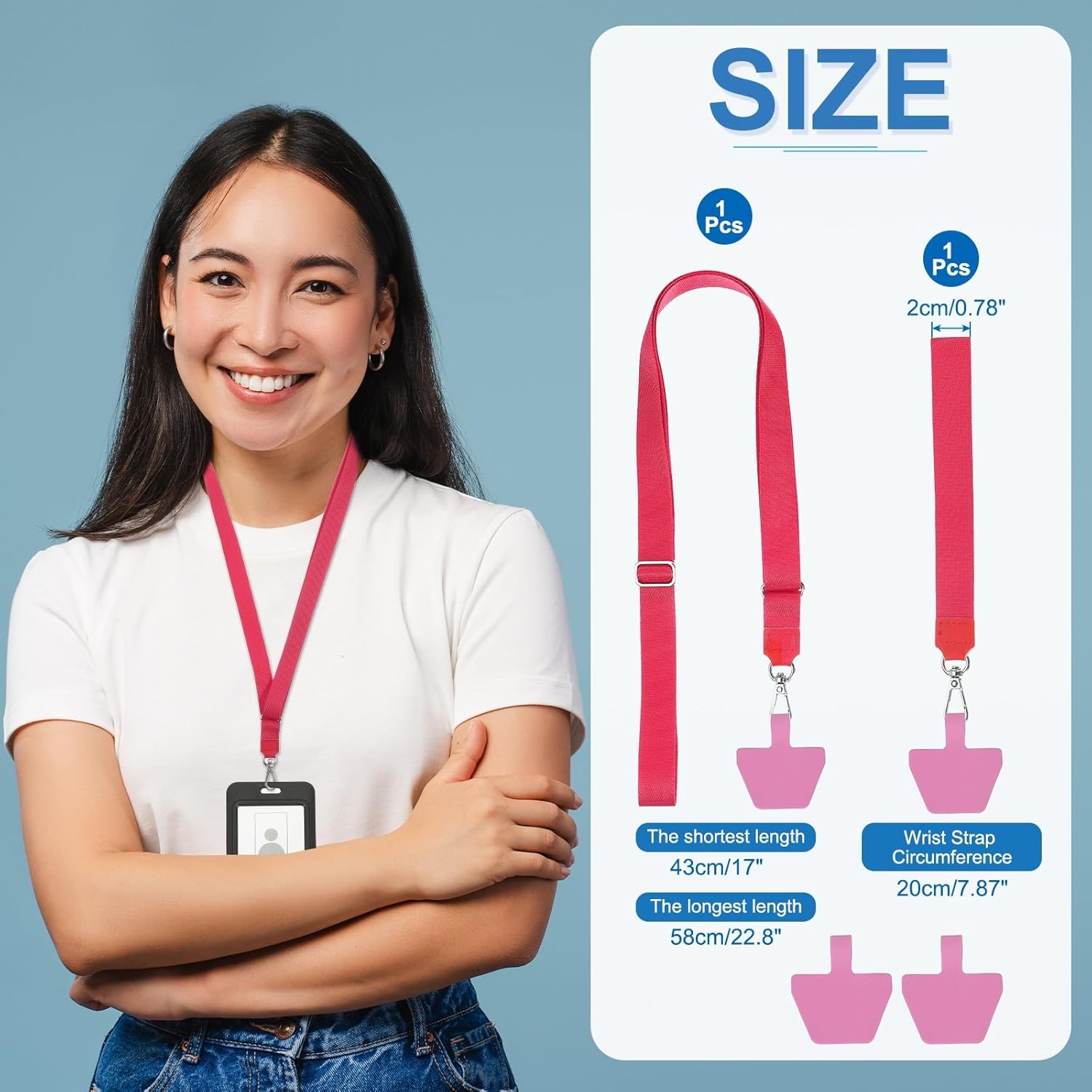 - Specification: Color: Light Red; Material: Polyester; The longest length is 58cm/22.8 inches; The shortest length is 43cm/17 inches; Rope Width: 2 cm / 0.78 inch; Wrist Strap Circumference: 20 cm/7.87 inch; Packing List: 1 Pcs x Smart Phone Lanyard; 1 x Wrist Strap; 4 x Phone Patches.
