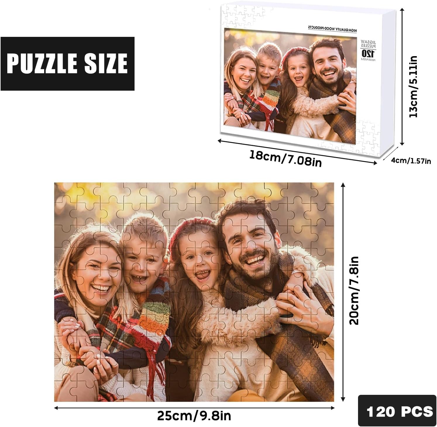 Custom Puzzle, Customize Puzzles from Photos with 120/200/300/500/1000 Pieces, Personalized Wooden Jigsaw Puzzle Gifts for Family, Adults, Christmas, Wedding, Pet