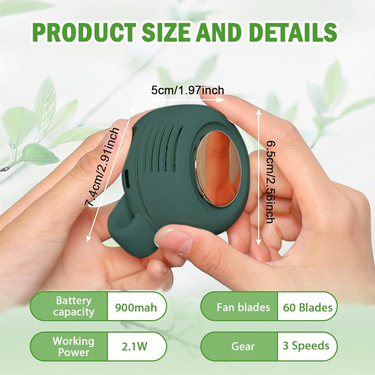 Portable Silent Mini Bladeless Fan Clip on, Portable Silent Mini Bladeless Electric Fan, For Outdoor & Travel & Office, Travel Accessories, Gift, Adjustable 3-Speed (Type-c, Green)