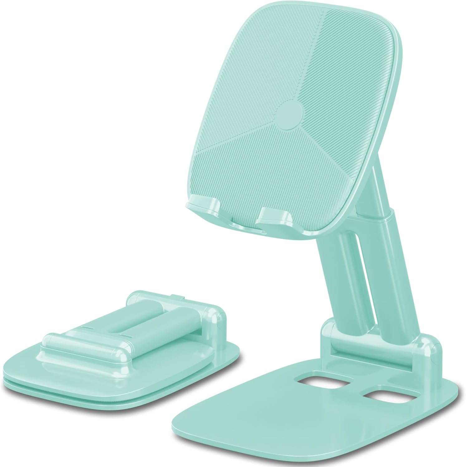 DEERLAMN Cell Phone Stand for Desk,Height Adjustable Cell Phone Holder Portable Desktop Stand, Travel Home Office Desk Accessories Compatible with iPhone 16/15/14/13/12/11 All Smartphone - Light Green