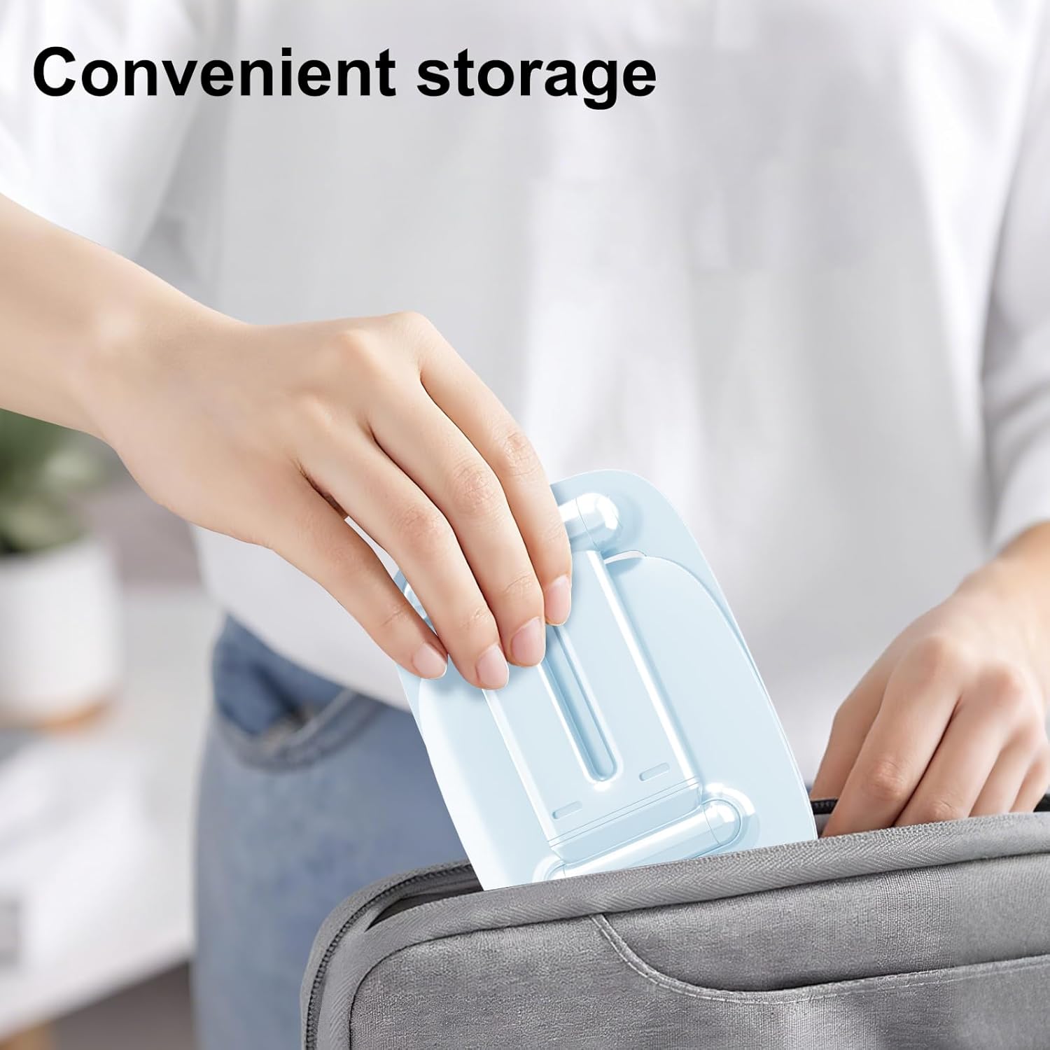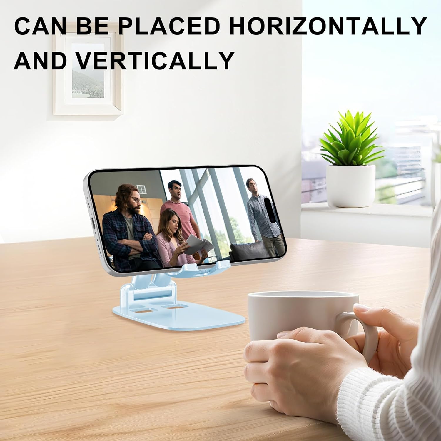 DEERLAMN Cell Phone Stand for Desk, Height Adjustable Cell Phone Holder Portable Desktop Stand, Travel Home Office Desk Accessories Compatible with iPhone 16/15/14/13/12/11 All Smartphone - Light Blue