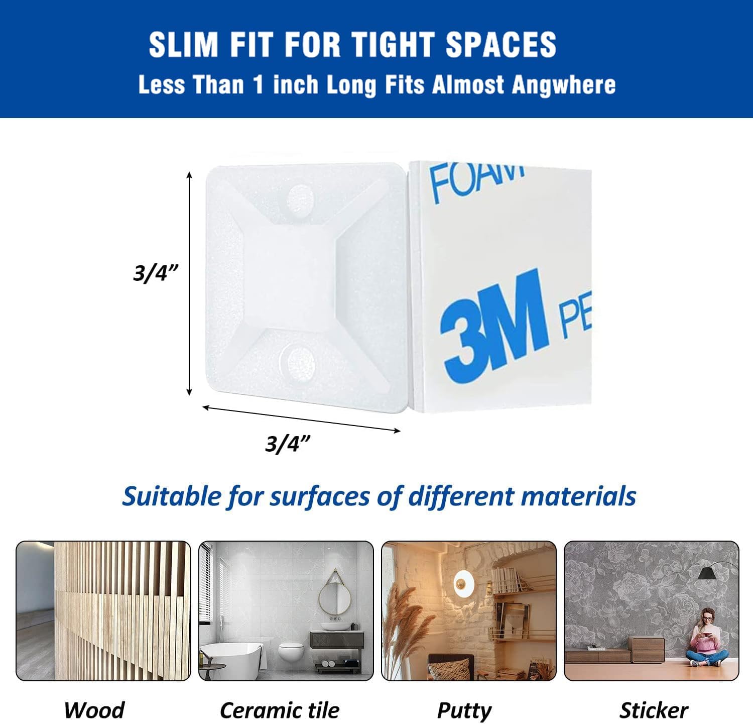 - 【1】Professional-Grade Adhesion Technology:Features industrial-strength 3M adhesive backing with UV-resistant PA66 nylon construction. Withstands temperatures from -40°F to 200°F, perfect for outdoor/indoor use in all weather conditions.