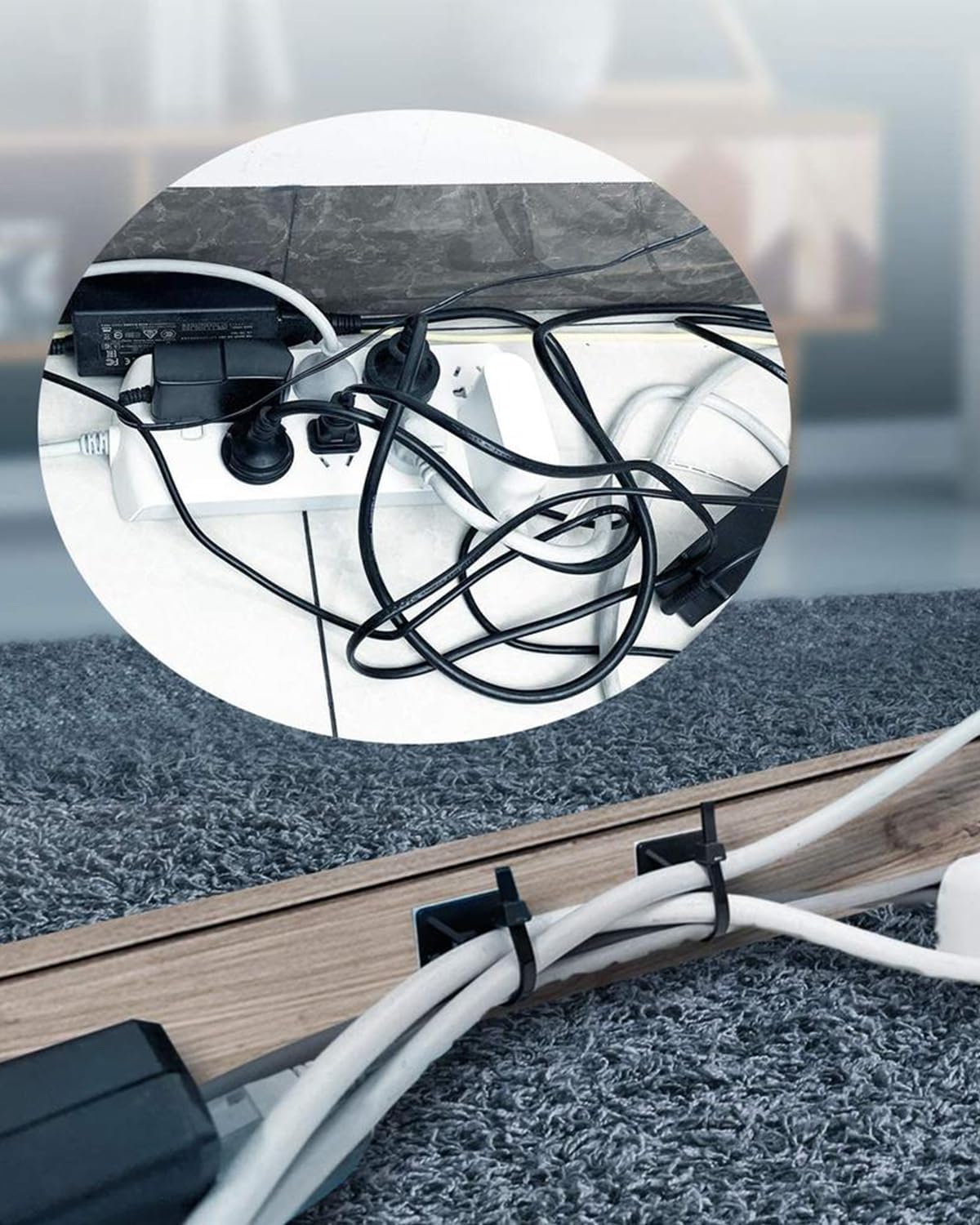 - 【4】Universal Wire Management Applications:Secures TV/computer cables, holiday lights, USB cords, garden hoses, automotive wiring, furniture anti-tip straps, IoT devices, and more.