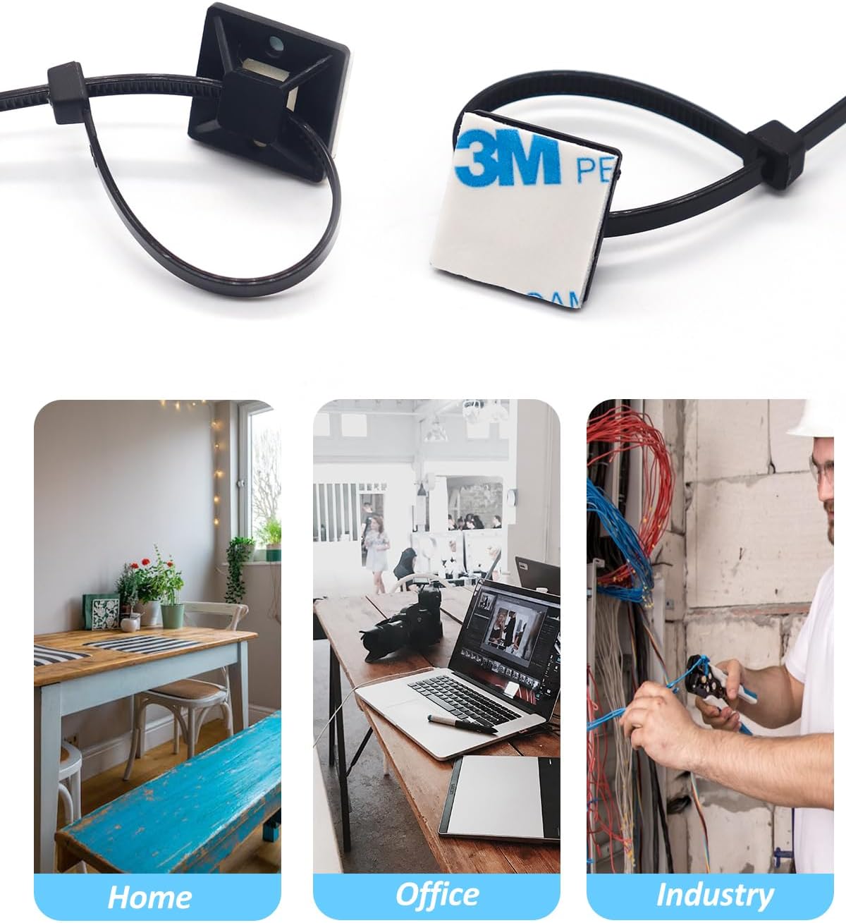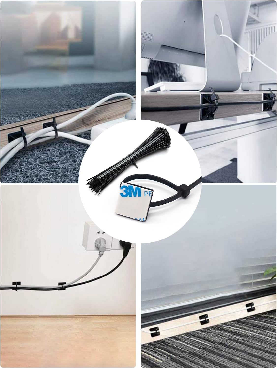 - 【2】Complete Cable Management Solution:Each kit includes (100) adhesive mounts + (100) 8" heavy-duty nylon zip ties . Installation options for drywall, wood, tile, metal and most smooth surfaces.