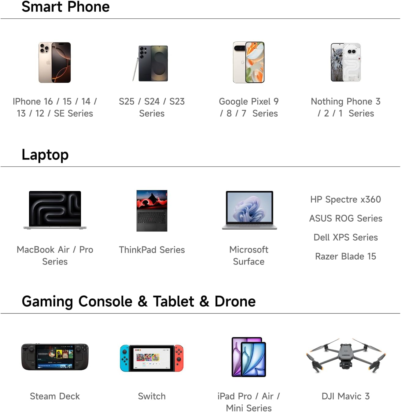 - Compatible Devices : Laptops, Tablets, smartphone