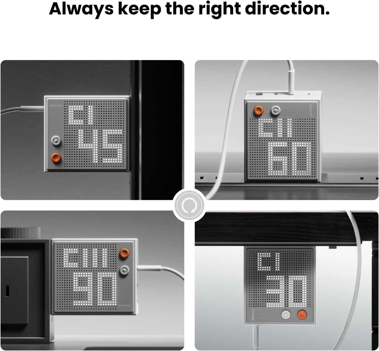 - Smart Interactive Display: Equipped with a unique adjustable dot-matrix screen. It displays real-time wattage for each port, and you can customize both the brightness and orientation to suit your needs. Whether you're using it on your desktop or taking it on the go, monitor the charging status of your devices at a glance. Stay informed and in control of your charging setup effortlessly