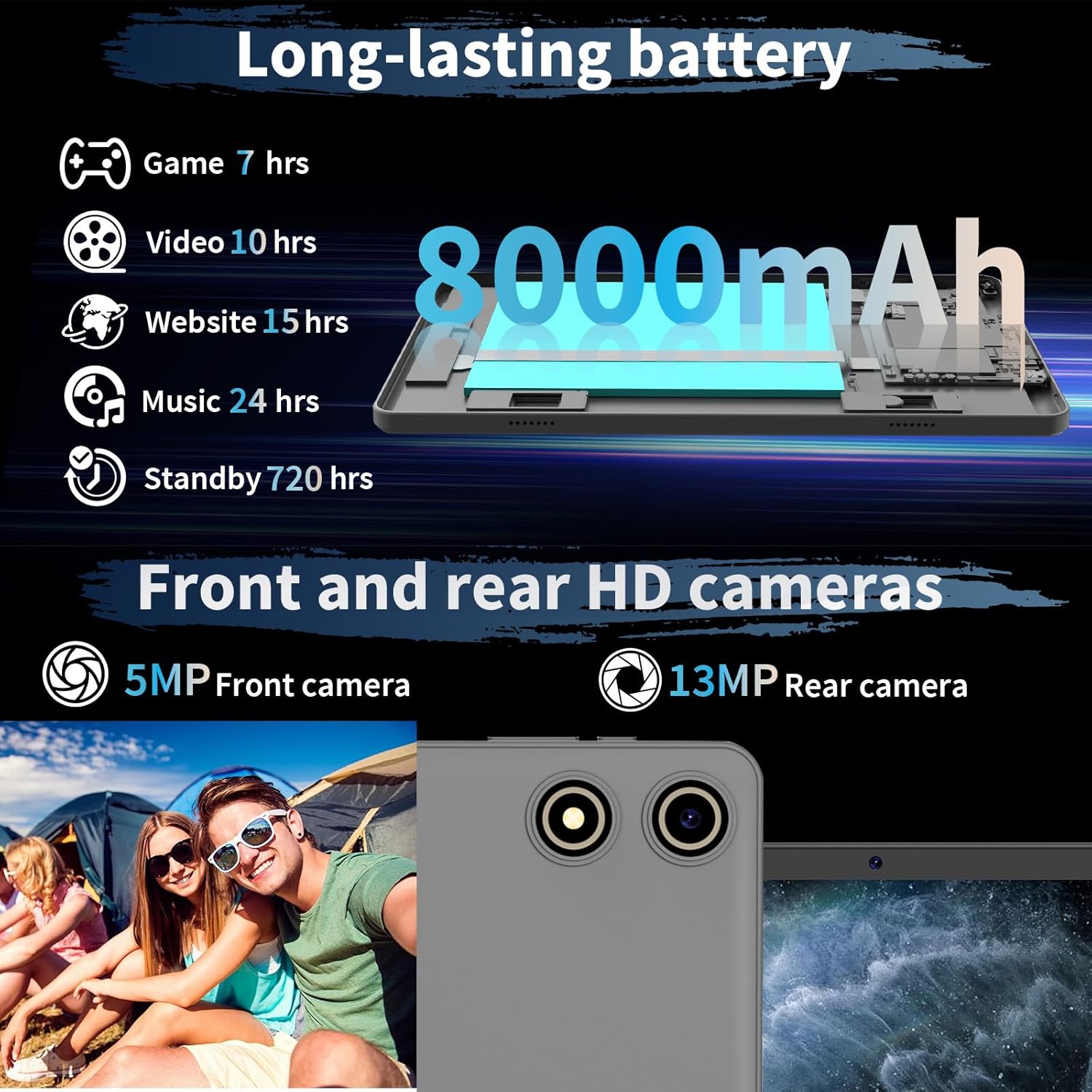 - 【Powerful Audio and Photography Experience】 This 2-in-1 tablet enjoys immersive sound quality through dual speakers, 13 MP rear cameras and 8 MP front camera, perfect for capturing memories, video calls and online meetings.