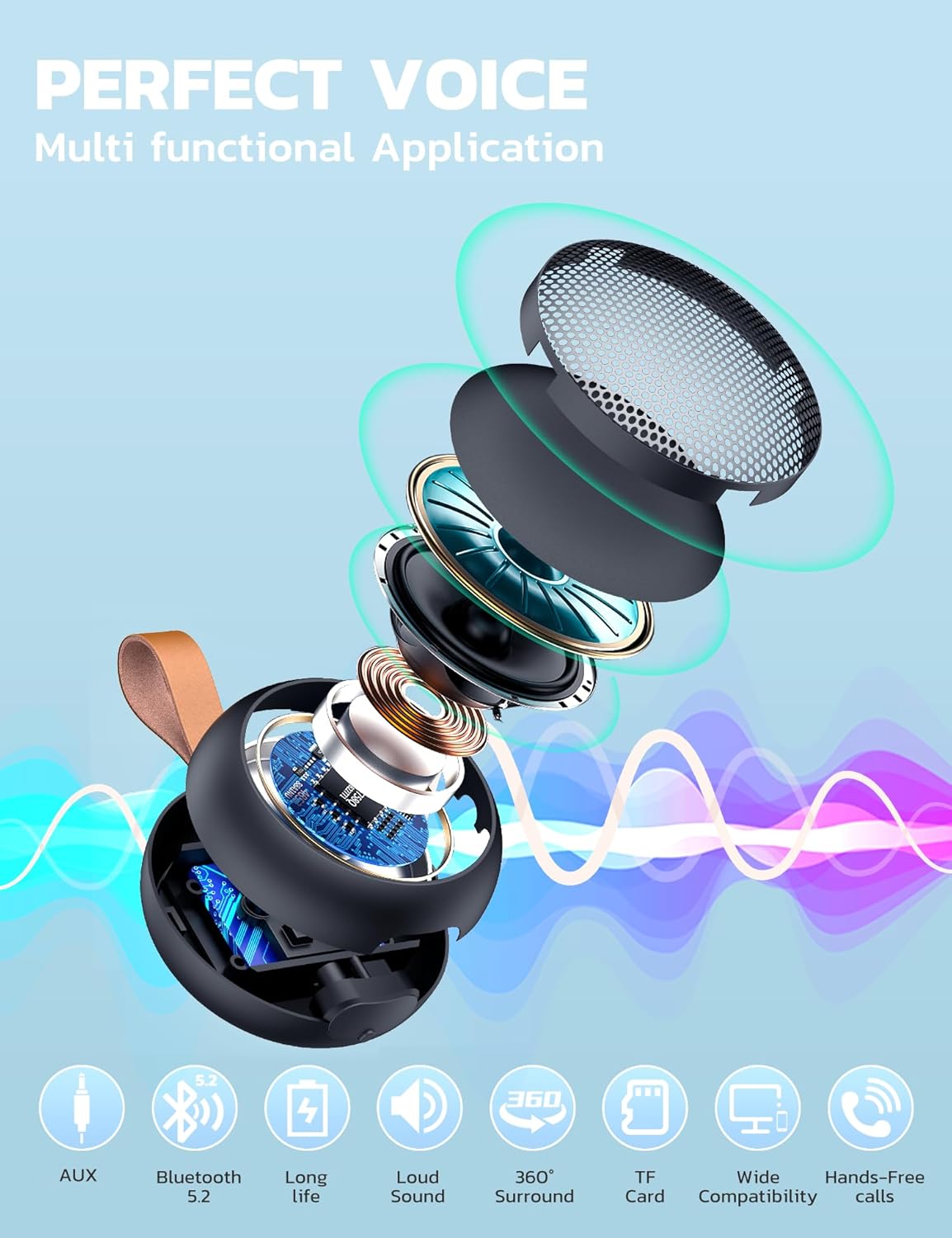 - 【Small body, loud sound】: This wireless speaker features a compact and mini size, but can produce loud, pure, musical, and energetic sound. Even under the noise of the shower, you can still enjoy the exhilarating music At the same time, the mini size is very convenient to carry out Your music life is everywhere!