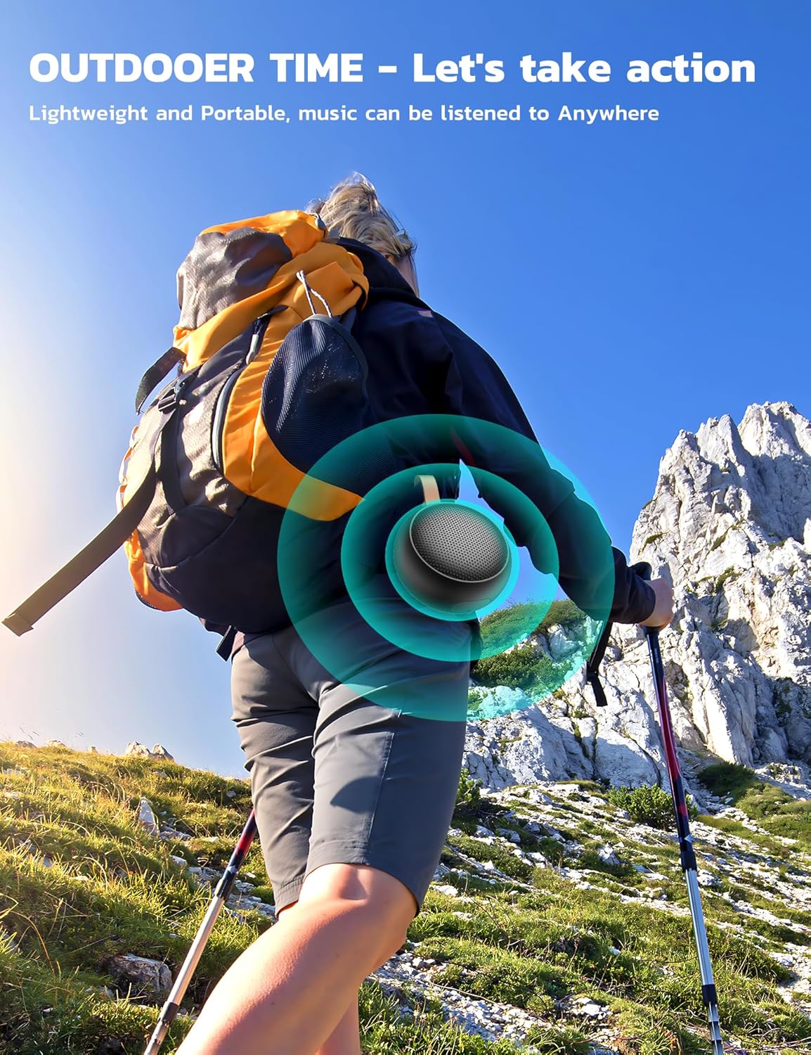 - 【 True IP7 Waterproof 】: Repeatable to test - completely submerged in 1 meter deep water for about 30 minutes - suitable for swimming pools, beach trails, showers, kayaking, rowing, paddleboarding, surfing, and fishing. Moreover, this shock-absorbing portable travel speaker is made of shock-absorbing materials and is suitable for various weather and terrain conditions, hiking, camping, running, and more.