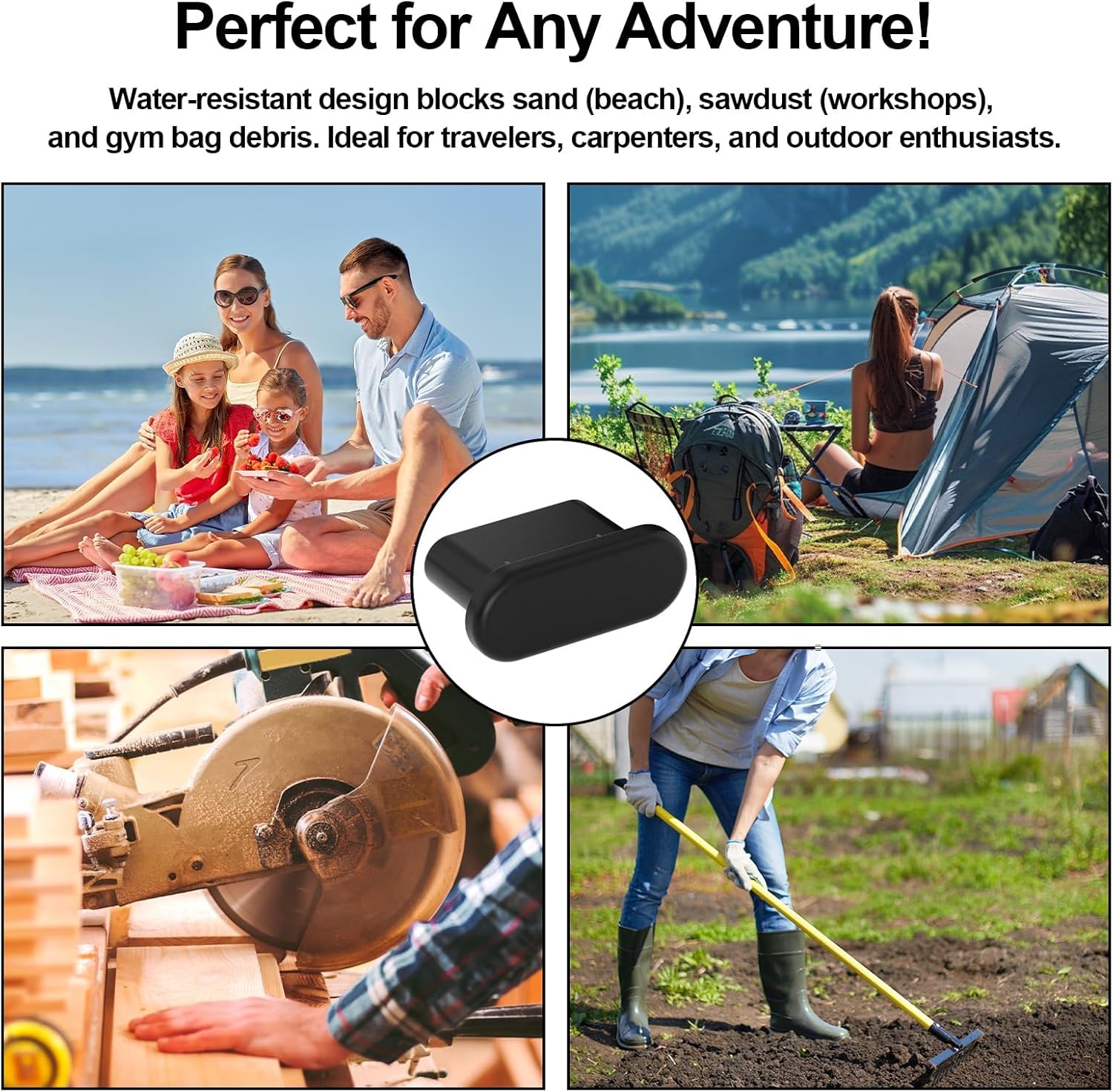 - Dustproof & Water-Resistant – Shields your charging port from sand, sawdust, moisture, and everyday pocket lint. Ideal for beach trips, woodworking, hiking, or daily use.