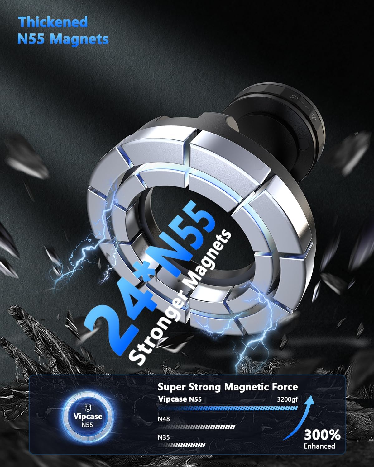 - Ultra-Strong Magnetism & Ultimate Stability: Equipped with 24 high-performance thickened N55 magnets, this mount delivers 300% stronger magnetic force than standard mounts, with a 3200gf grip—strong enough to hold up to 60 phones. Rigorously tested with 8,000+ vibration trials and extreme road simulations, it keeps your phone secure even on bumpy roads, sudden stops, or sharp turns. The precision-engineered magnetic array ensures zero interference with phone signals, GPS, or charging—enabling clear calls, smooth navigation, and uninterrupted power