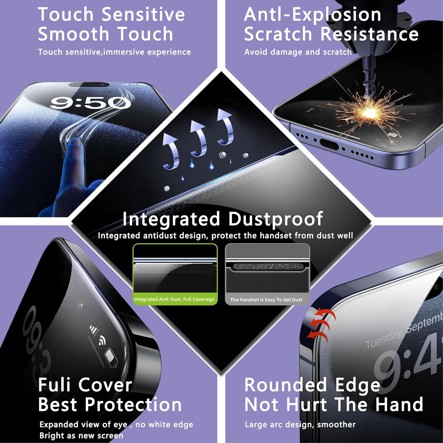 - Full Coverage with Built-in Speaker Shield : Precisely cut for full-screen coverage,this iPhone 15 Pro Max screen protector includes a protective mesh over the speaker,offering added defense without compromising sound clarity or touch sensitivity