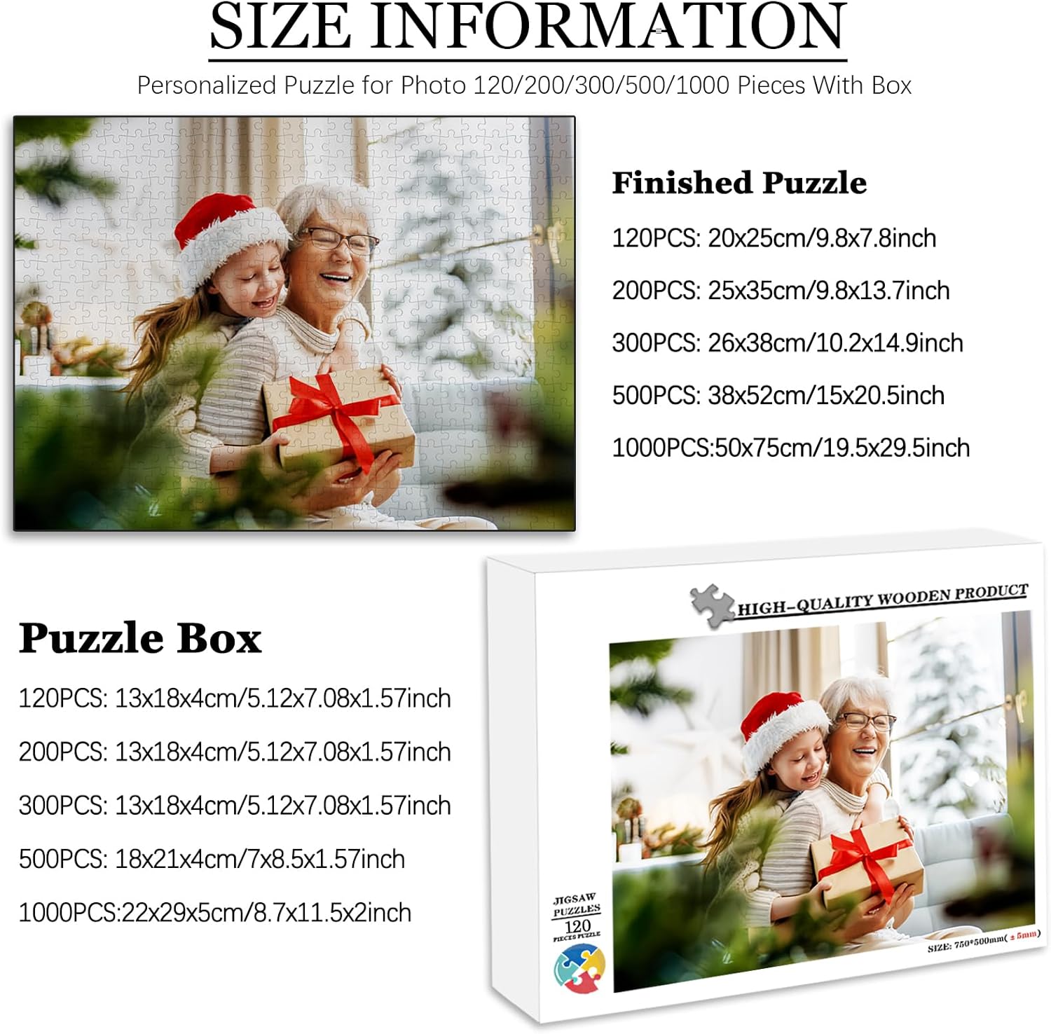 Custom Puzzle 120/200/300/500/1000/1500 Pieces, Personalized Puzzle from Your Own Photos, Customized Picture Jigsaw Puzzle Gift for Christmas Wedding Birthday Family