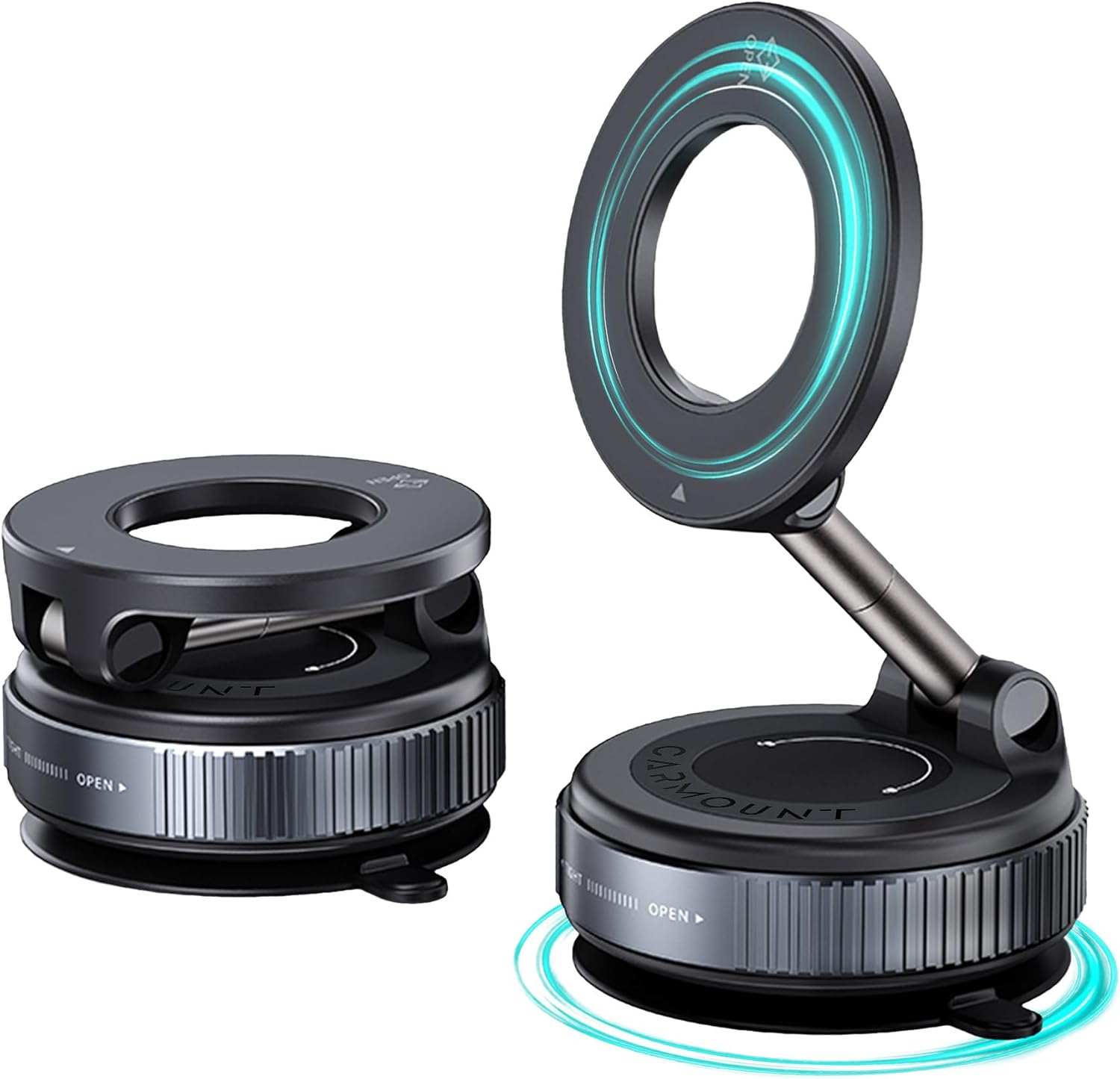 CARMOUNT Clutch–X One – Cell Phone Car Mount for iPhone – 360° Magnetic Phone Holder for Car, 96LBS Suction Cup Phone Mount for Car & Phone Holder for Desk, Metal Strut (Black)