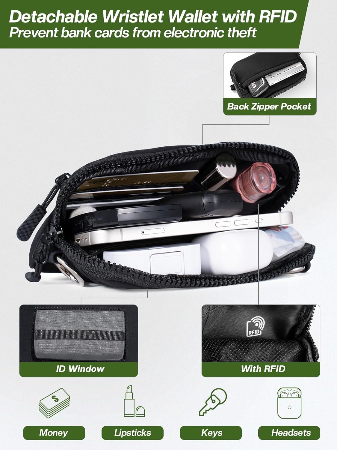 - Detachable Wristlet Wallet: Our detachable wrist wallet is made of waterproof nylon material. The transparent ID window makes it more convenient to carry when going through security or inspection. This cute wristlet wallet also features RFID technology, effectively preventing unauthorized scanning. additionally, this black wristlet wallet can attach it to a cell phone lanyard or hang it from any buckle, and you can mix and match according to your needs and preferences.