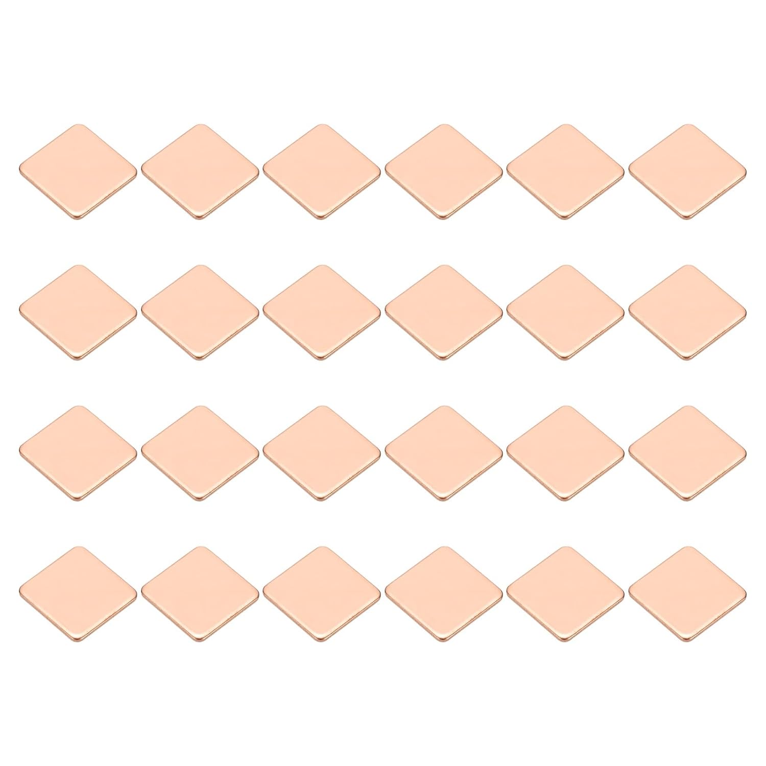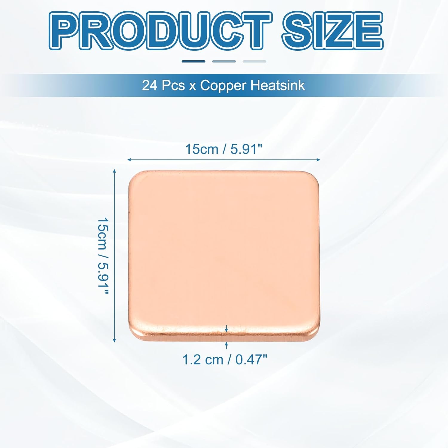 - Color: Copper Tone; Material: Copper; Size: 15 x 15 x 1.2 cm / 5.91 x 5.91 x 0.47 Inch (LxWxT); Package List: 24 Pcs x Copper Heatsink