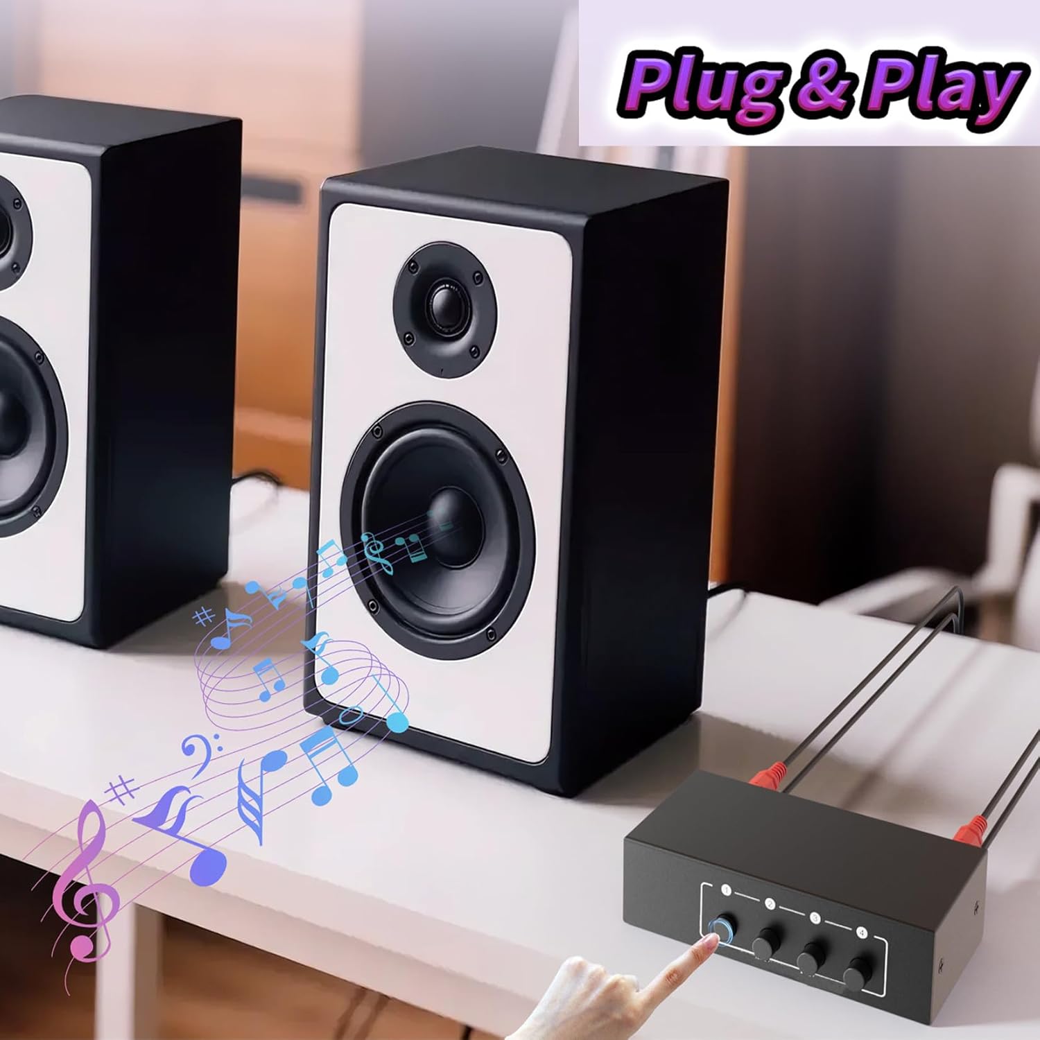 - Cost-effective Aux L/R Audio Splitter: This simple and affordable aux rca audio distributor box is designed with lower power consumption, promoting energy efficiency during operation. Easy to use, saves space, and reduces clutter. It is a relatively inexpensive way to expand your audio setup