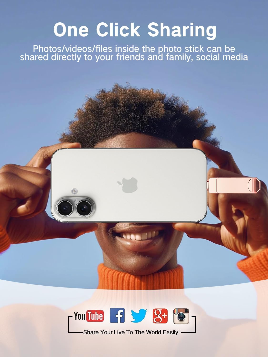 - 【Plug and Play, Expand iPhone and iPad Storage Instantly, No App Needed】Running out of space on your iPhone or iPad? This 512GB photo stick offers immediate storage relief. Ideal for travel photographers editing on iPads, it eliminates storage worries across all your devices. Just plug it in, no complex setup required!