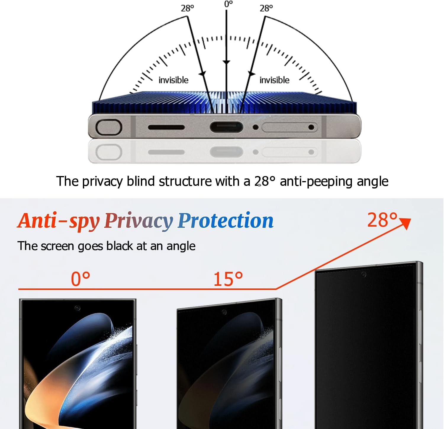 - PRIVACY SCREEN PROTECTOR:Major for keeping prying eyes from seeing at what you’re doing on your galaxy S24 Ultra screen protector.It will not only help prevent damage to your screen but will also protect your privacy from those around you. Great for people on the go, the dark screen makes it near impossible for someone to see your screen while looking over your shoulder. For anyone concerned about privacy who also visits busy public areas, it’s a simple solution to bring added protection to your device.