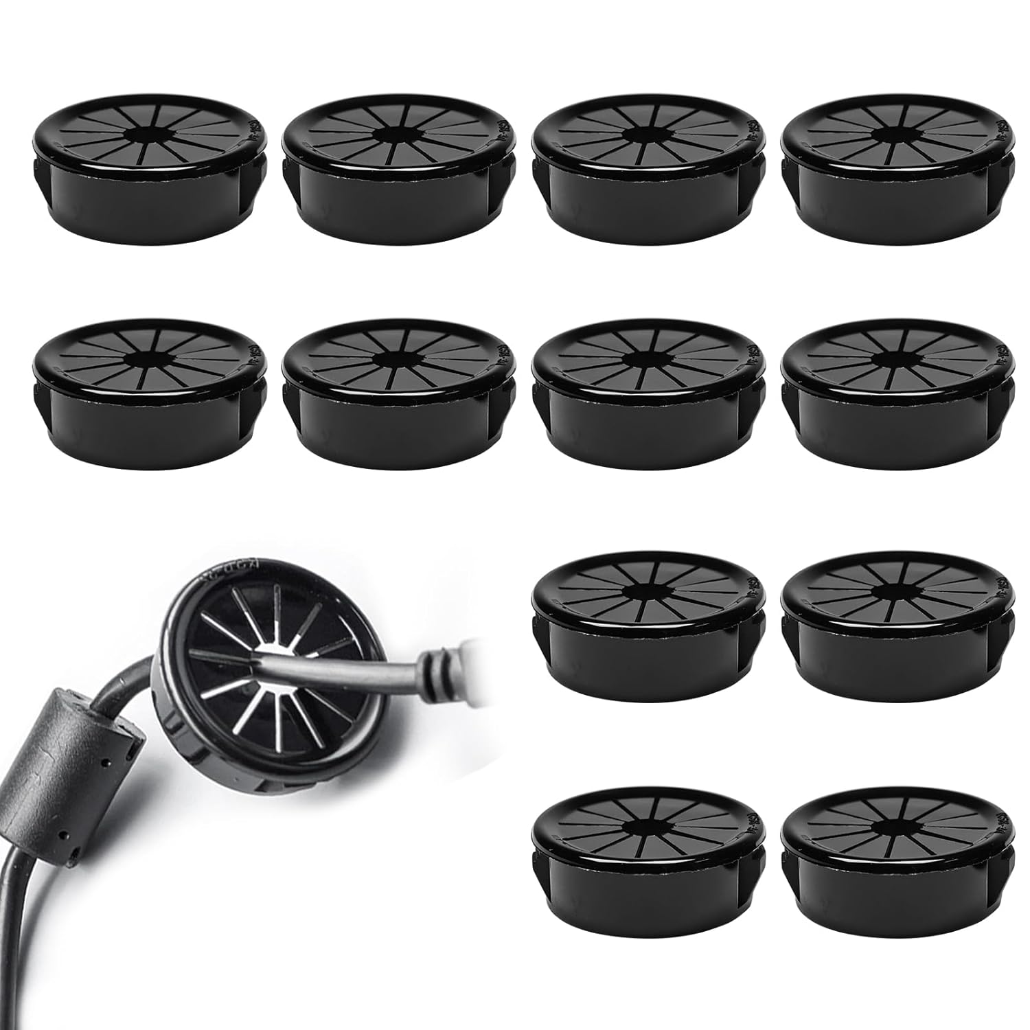 - Wide Applications: The desk wire hole insert is not only limited to computer countertops, computer components, office desks, office equipment; Snaps into electrical outlet box, switch box metallic box or other enclosure; Our hole bushing provide insulation and mechanical protection for electrical and telecommunication cables in most residential, industrial, automotive equipment and machinery