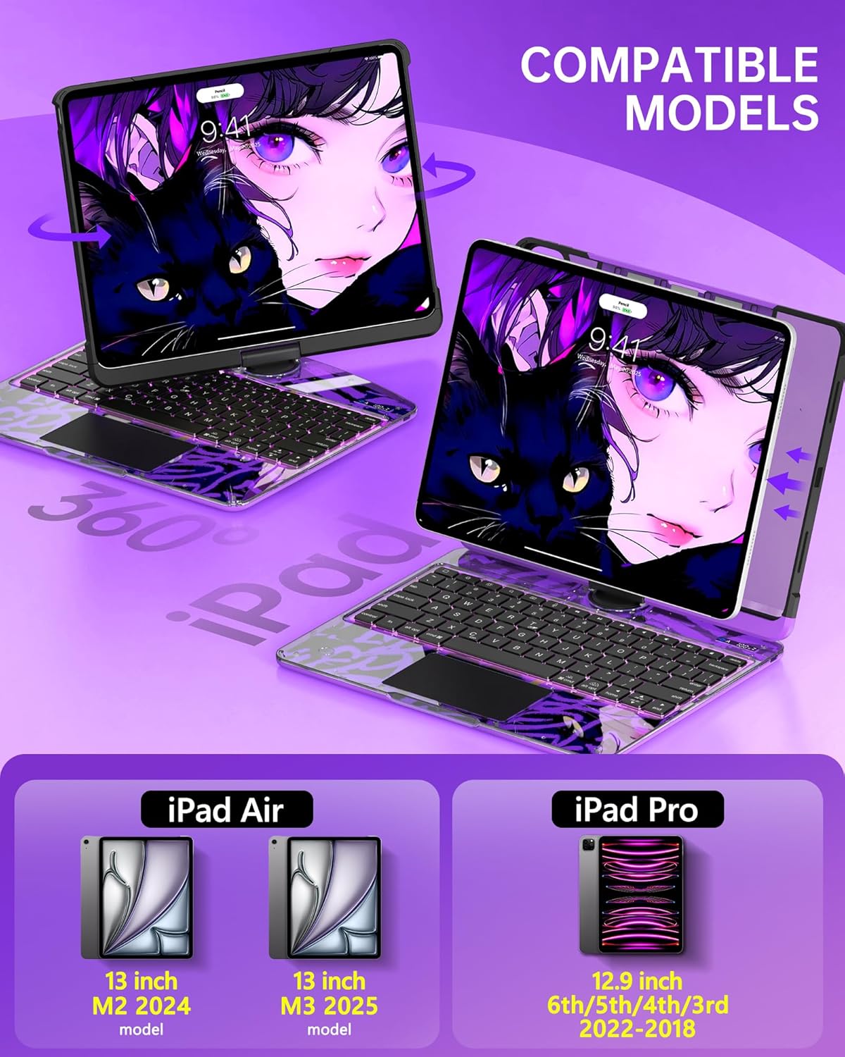 - ✅【Compatible with iPad Air & Pro】 Fits iPad Air 13" (M3/M2, 2025/2024), Pro 12.9" 6th/5th/4th/3rd (2022-2018). ❗ Not for Pro 13" M4 2024 ❗ Check and confirm model before purchase.
