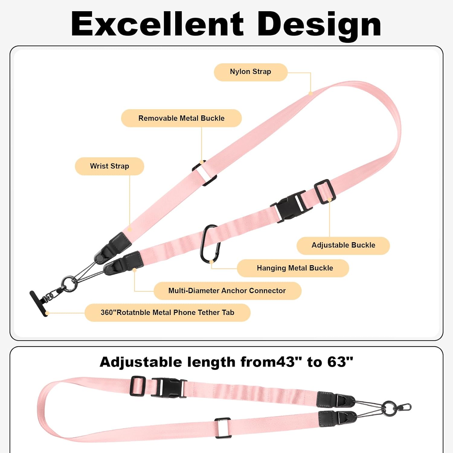 - Adjustability and Convenience: The length of the cell phone lanyard can be adjusted from 43" to 63", and you can adjust it to the best experience according to your needs. There is a quick release buckle on the mobile phone lanyard, which can be easily installed and released at any time, and is convenient to use.