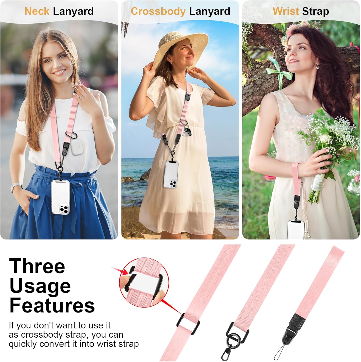 Adjustable Crossbody Phone Lanyard, Universal Phone Wrist Strap and Phone Neck Strap with Tether Tab, Phone Lanyard with Quick Release, Suitable for iPhone and Most Smartphones, Light Pink