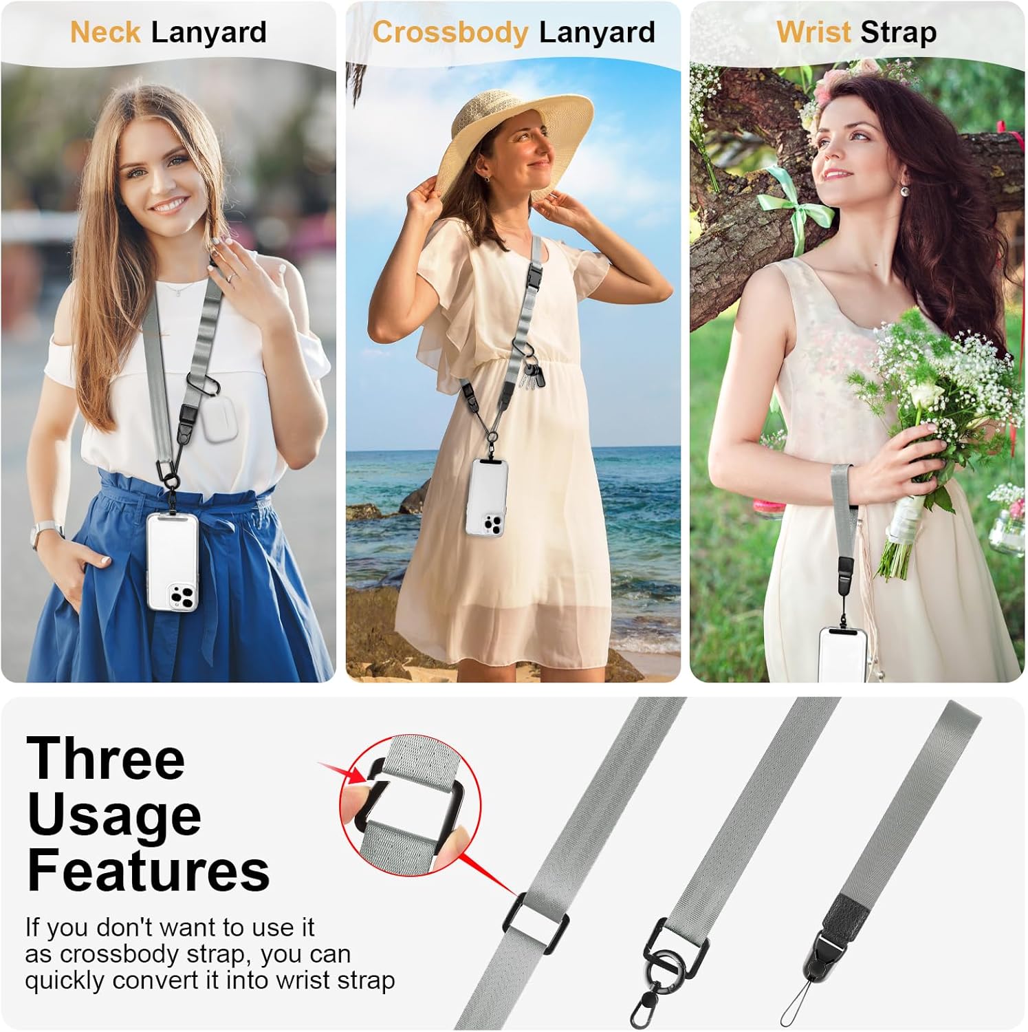 - Multifunctional: This multifunctional crossbody phone strap can be easily and firmly hung on the waist, wrist and neck, whether you are shopping, exercising or traveling, you can easily free your hands and prevent your phone from falling. It can also be detached into a wrist strap, bringing a variety of wearing methods. In addition, you can also hang keys, glasses, headphones and other items on the crossbody strap to reduce the time and tediousness of searching.