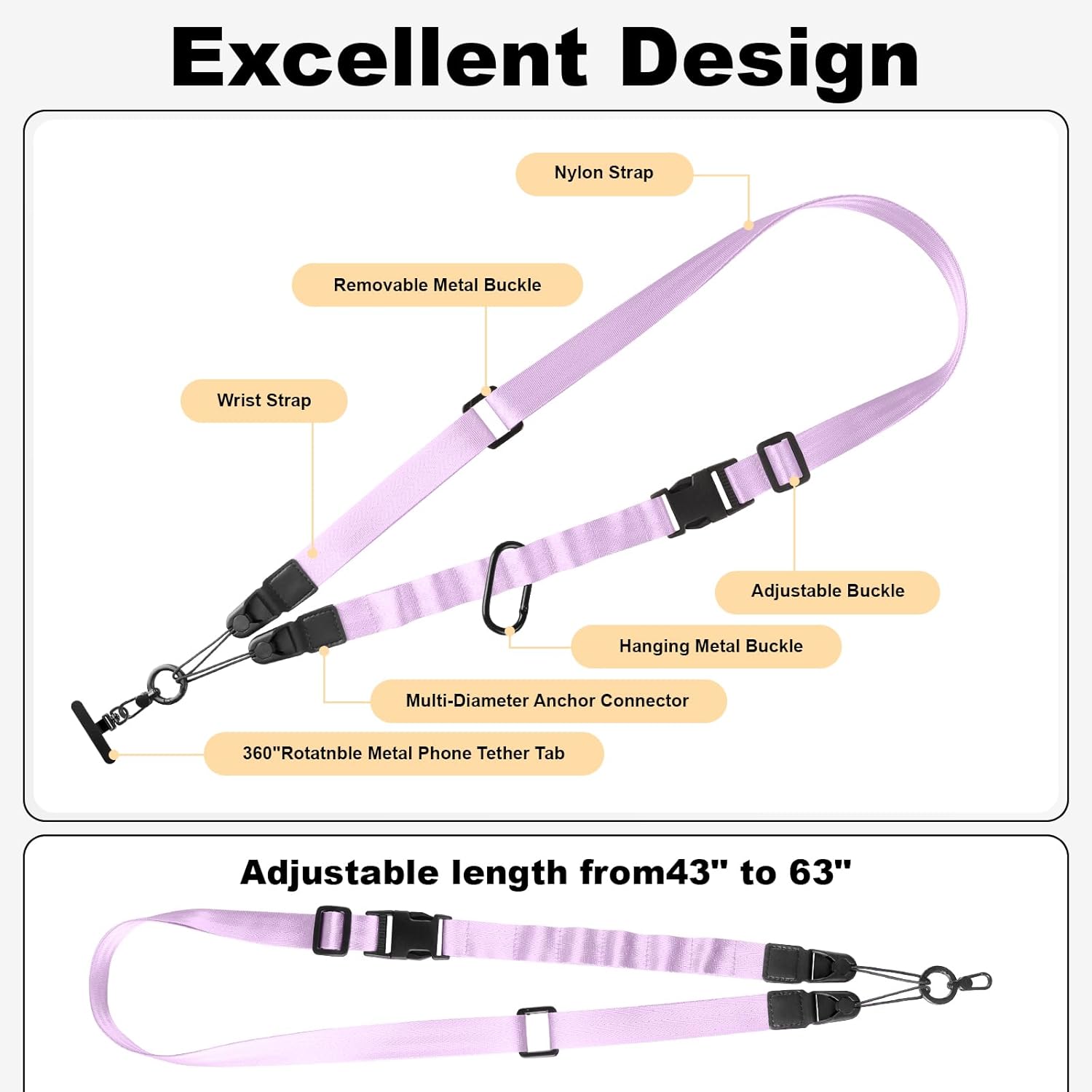 - Adjustability and Convenience: The length of the cell phone lanyard can be adjusted from 43" to 63", and you can adjust it to the best experience according to your needs. There is a quick release buckle on the mobile phone lanyard, which can be easily installed and released at any time, and is convenient to use.