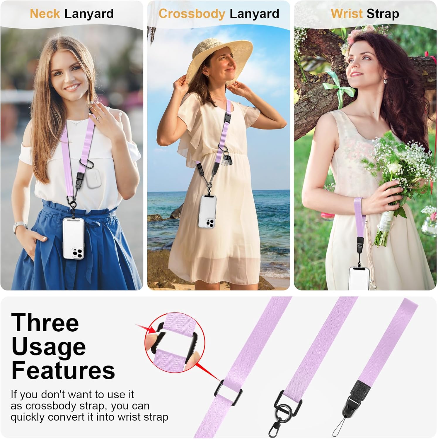 Adjustable Crossbody Phone Lanyard, Universal Phone Wrist Strap and Phone Neck Strap with Tether Tab, Phone Lanyard with Quick Release, Suitable for iPhone and Most Smartphones, Light Purple
