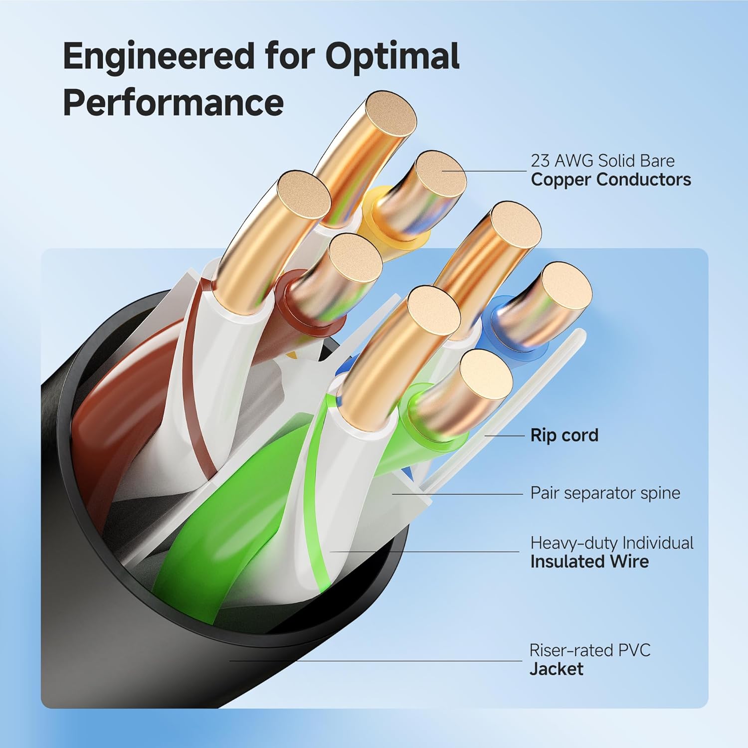 - Riser-Rated Safety: The riser-rated (CMR) jacket provides superior fire resistance, making this ethernet cable spool suitable for installation between floors in residential or commercial buildings. Its safety rating offers peace of mind for professional network installations in multi-story environments.