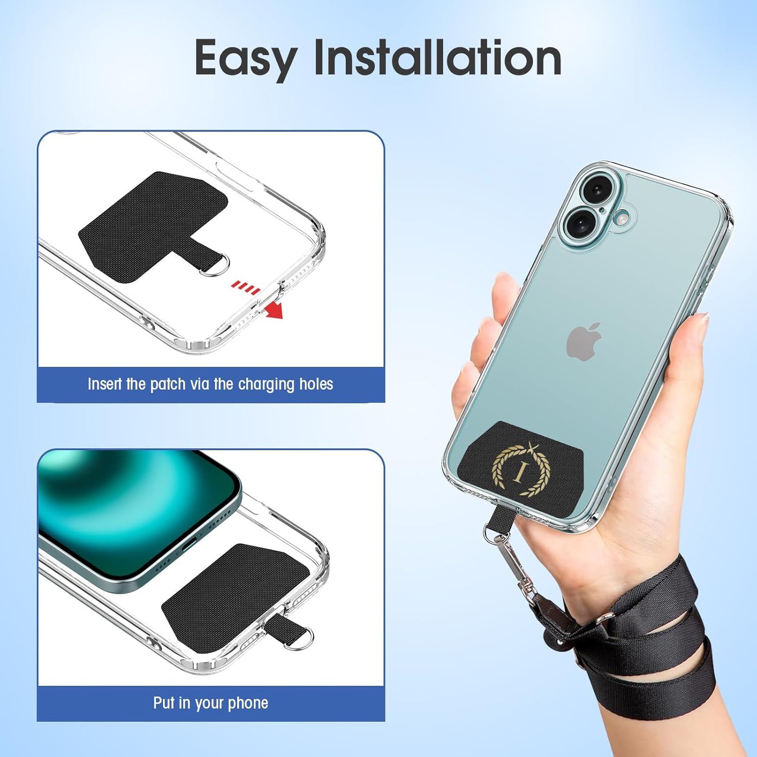- 【Easy to use 】No tools are required,You just need to insert the pad through the charging hole of the fully covered phone case, then plug in your phone and connect to the lanyard (sorry, not for half-coverage cases).The phone strap crossbody chain does not block your charging hole, so you can easily charge your phone while using the product.