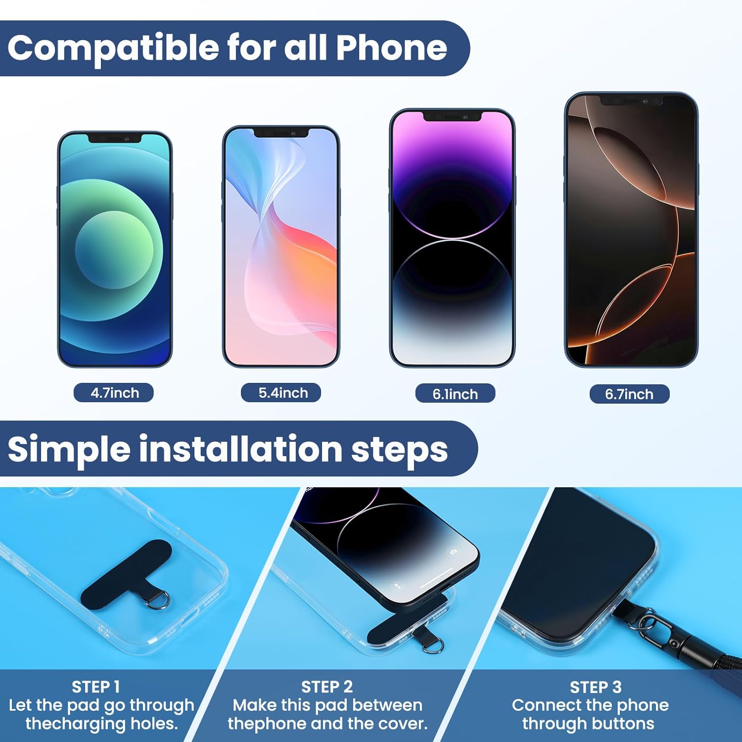• 【Easy to Use】: It is connected to the mobile phone through a patch that is placed inside the phone case. And the lanyard only needs to be buckled to the metal ring of the tab. The universal cell phone chain does not block your charging hole