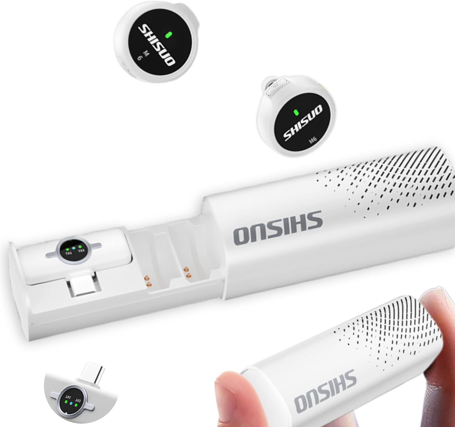 - Included Components : Charging Case, Lightning Adapter, USB-C Cable, Wireless Microphone