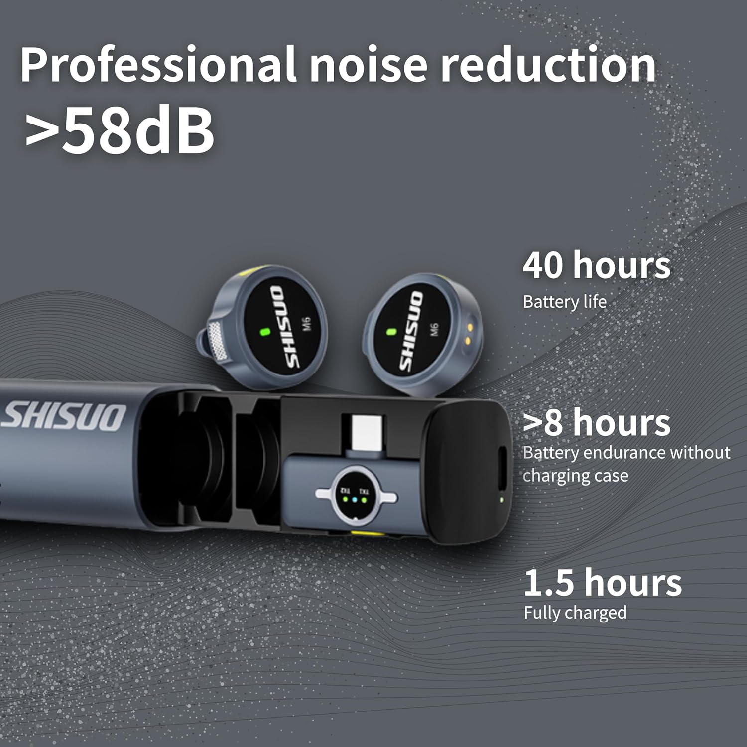 - Special Feature : Powering Up to 40 Hours Total, Smart AI Noise Reduction for Perfect Clarity, True Studio-Grade Hi-Fi Sound for Pros, Truly Plug-and-Play Simplicity, Ultralight & Low-Profile (Only 6.5g!) Powering Up to 40 Hours Total, Smart AI Noise Reduction for Perfect Clarity, True Studio-Grade Hi-Fi Sound for Pros, Truly Plug-and-Play Simpli… See more