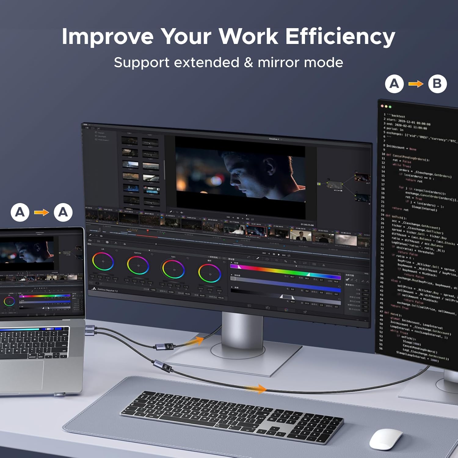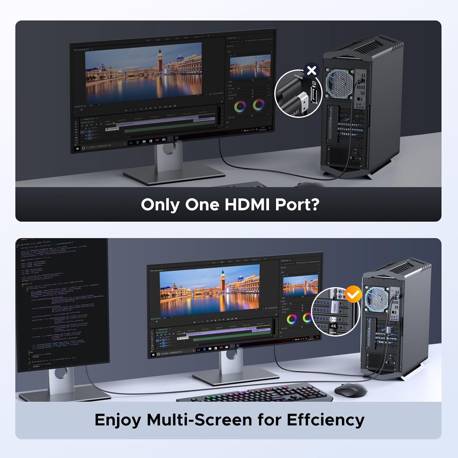 - Dual-PC cable DisplayPort to HDMI Adapter: This 4K DP to HDMI cable turns a DP port into an HDMI port, allowing you to connect a DP device (e.g., PC, laptop, or graphics card) to an HDMI monitor, projector, VR headset, or HDTV for audio & video signal transfer. It not only safeguards the original DP port from wear and tear but also offers plug-and-play convenience for daily use. Additionally, it effectively resolves the limitation of PCs with only one HDMI port