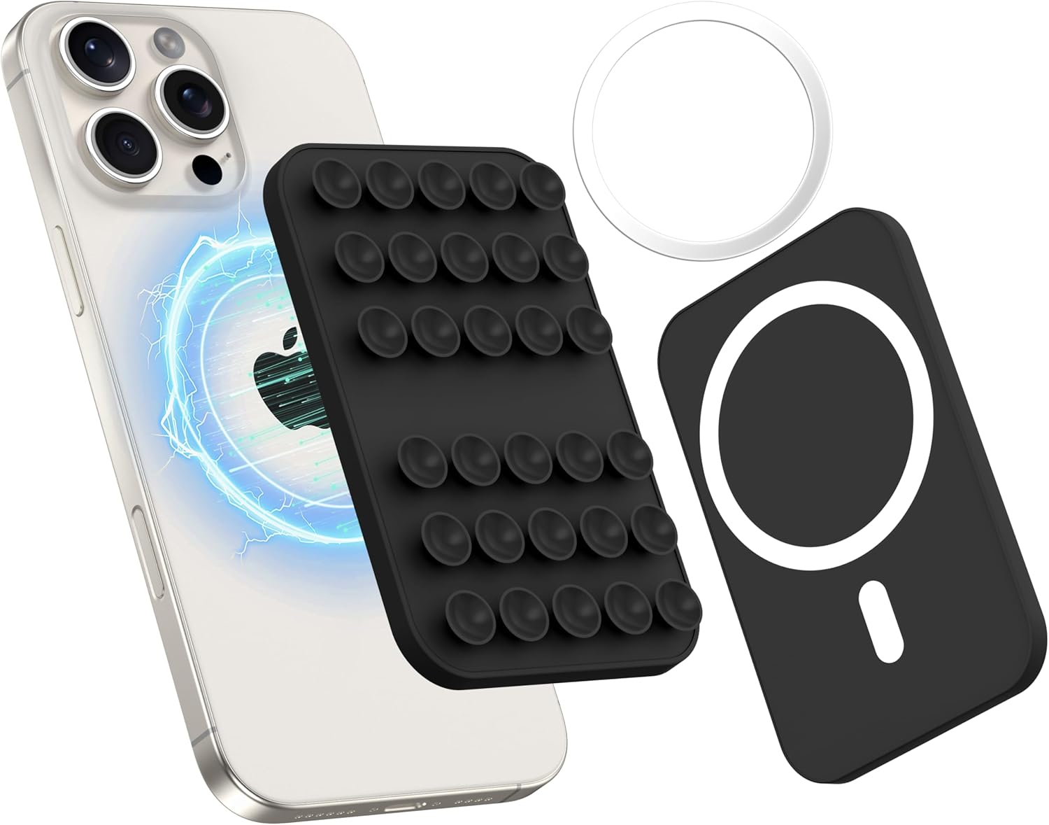 - Compatible Models:This sticky phone grip directly work with iPhone 16 15 14 Pro Max/Pro/Plus and 13 12 Pro Max/Pro/Mini and other phones with MagSafe cases. For non-Magsafe phones or cases,such as :Samsung Galaxy, HTC, Note, and more,please paste the metal magnetic ring to the phone before attaching the suction mount.Patent NO: US D1082776,Patented product, no infringement allowed.