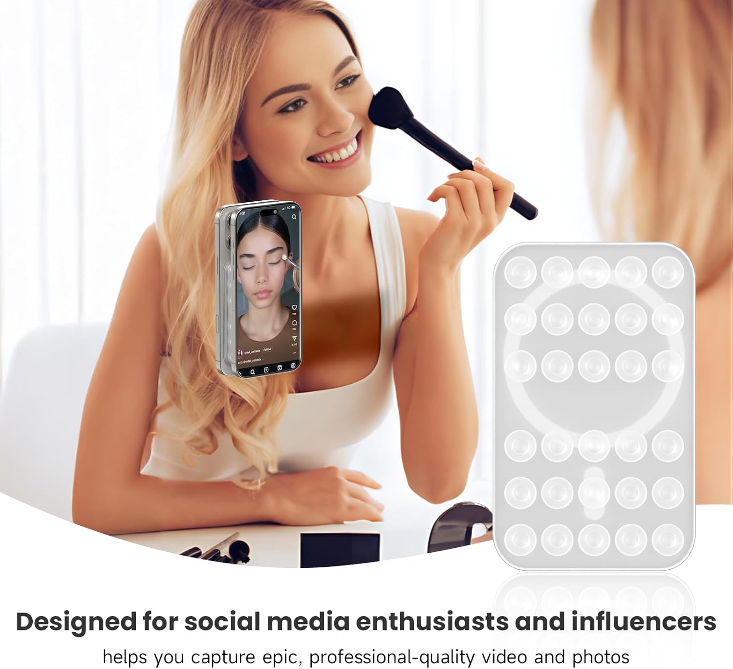 - Unmatched Suction Grip:Our magsafe suction mount equipped with 30 suction cups, each 12mm in diameter, this phone sticky grip offers 40% more surface area for a reliable hold.Adopt N52 magnet, with greater suction and greater firmness,secure and convenient.