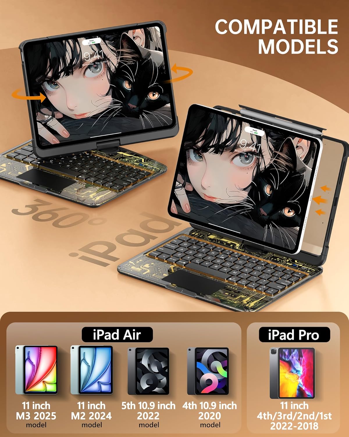 - Compatible Devices : iPad Air 11" (M2, 2024), iPad Air 11" (M3, 2025), iPad Air 4th 10.9" (2020), iPad Air 5th 10.9" (2022), iPad Pro 11" 4th/ 3rd/ 2nd/ 1st (2022-2018) iPad Air 11" (M2, 2024), iPad Air 11" (M3, 2025), iPad Air 4th 10.9" (2020), iPad Air 5th 10.9" (2022), iPad Pro 11" 4th/ 3rd/ 2nd/ 1st (2022-2018)