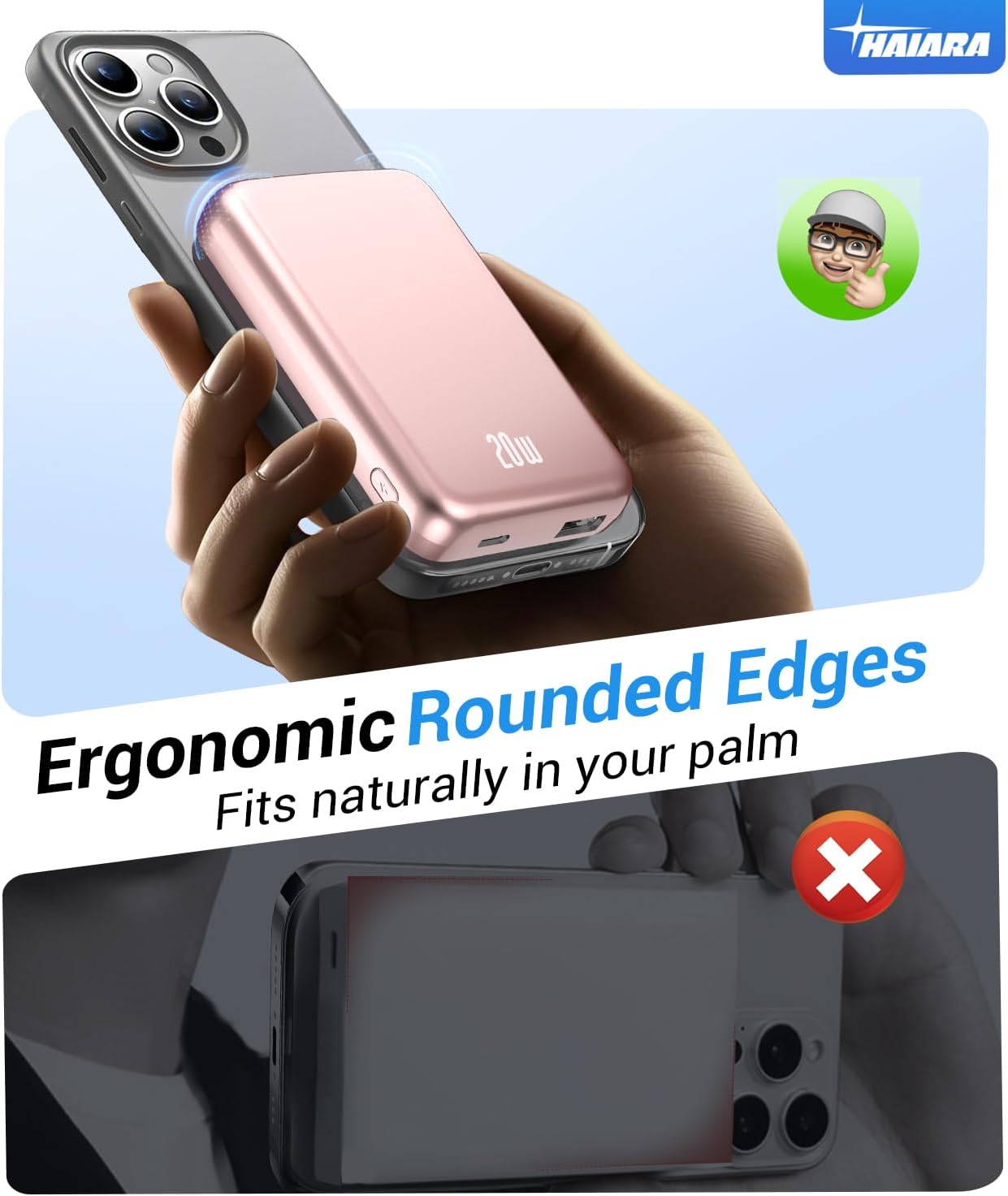- Strong Magnetic Charging & Wide Compatibility: HAIARA portable charger is perfectly compatible with iPhone 16/15/14 Pro Max/Pro/Plus, 13/12 series Equipped with 1500g magnetic force, firmly attaches to your phone even during outdoor activities. No more dropping issues! (Note: Remove thick non-magnetic cases for optimal).