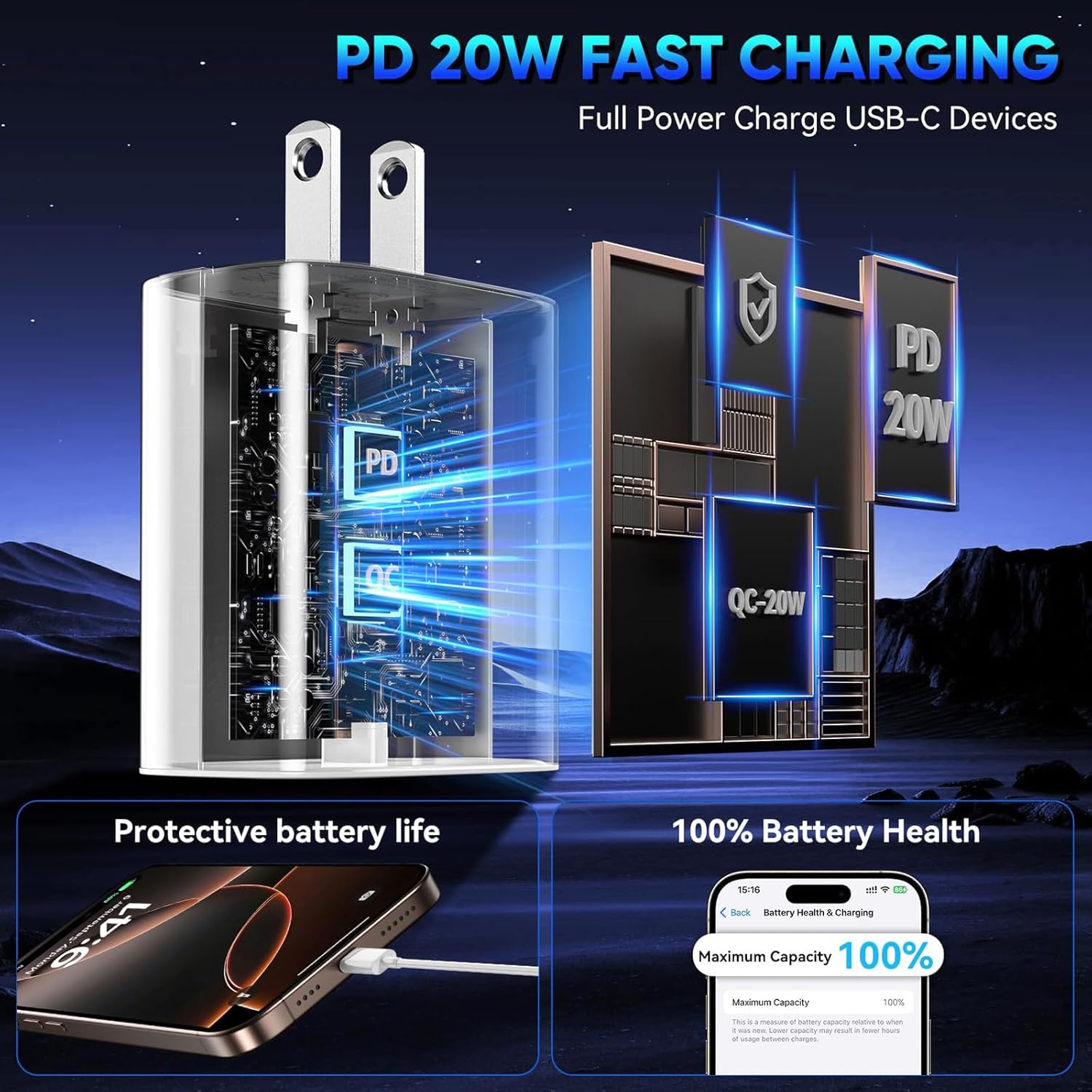 - [Safe Fast Charging iPhone 16 Charger]: This phone charger usb c 20W charger for iPhone 15 16 pro max provide intelligent circuit design to keeps your iPhone 16 Pro Max/15 Pro be safe from over-current over-voltage over-heating , short-circuiting, exhaustive protection while charging