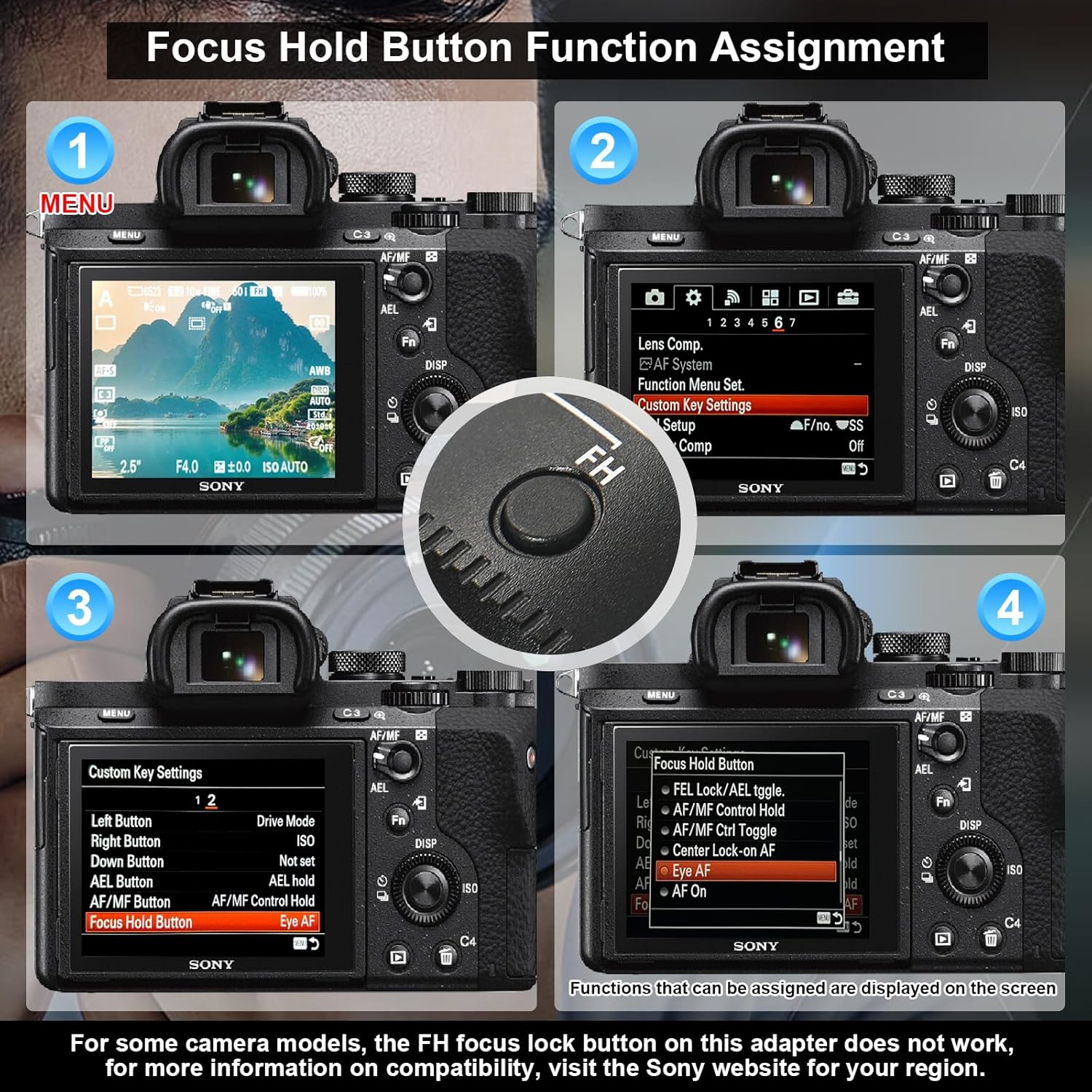 - Lens Mount Adapter is compatible with Canon EF/EF-S mount lenses, adapts to Sony E-mount including Sony A7 A7c A7s A7r A9 A1 series mirrorless cameras for video/photo autofocus.