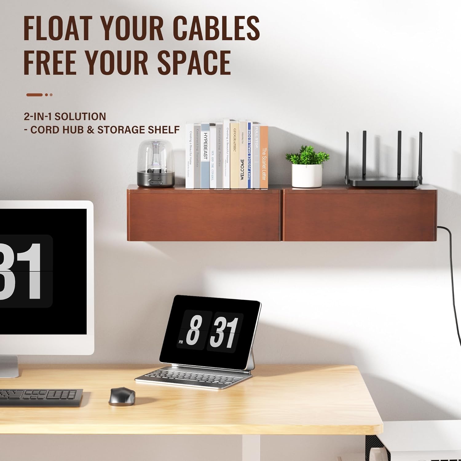 - MAXIMIZE YOUR SPACE: Free up valuable desk/floor space with our wall mounted cord hider box!Simply attach the included heavy-duty mounting hooks to any wall, and effortlessly hang the wooden cable management box.Perfect behind desks, under TVs, or by beds—keeping cords hidden yet accessible for a cleaner, organized space.