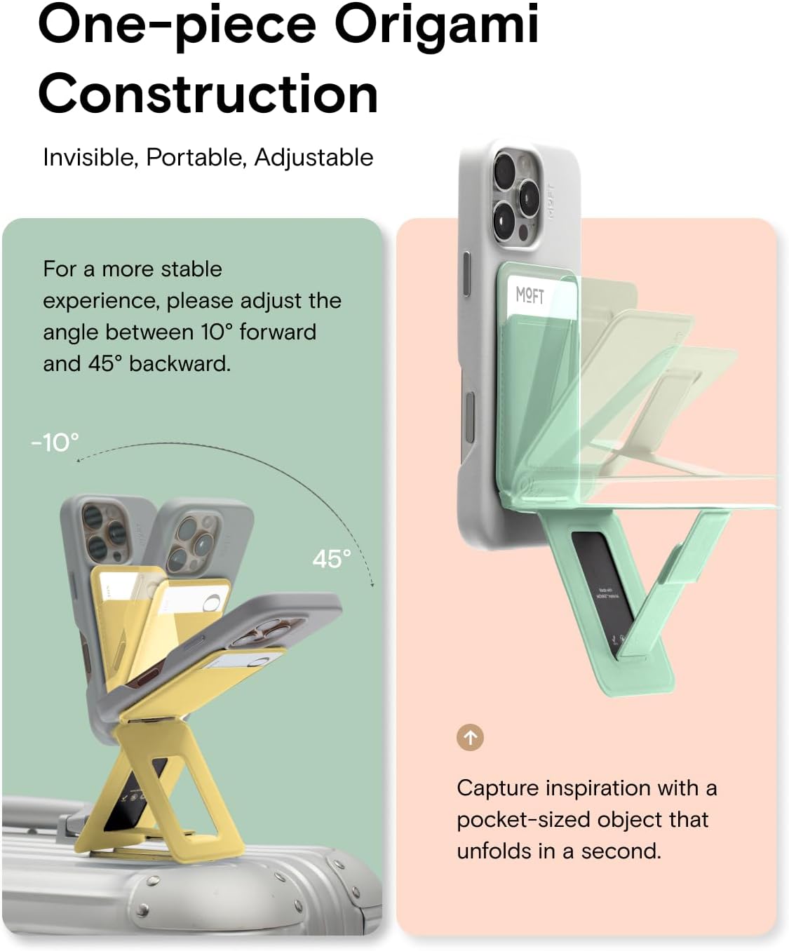 - Foldaway On-the-Go Companion: With a thickness of only 0.35" and weighing just 3.4oz, this magsafe wallet fits in your palm and pocket without adding bulk. It’s the perfect on-the-go companion, allowing you to access all its features wherever you are. Additionally, it can be used as a stand for the iPhone’s Standby mode on any surface. MOFT phone holder available in stylish 5 colors, it complements any style or outfit.