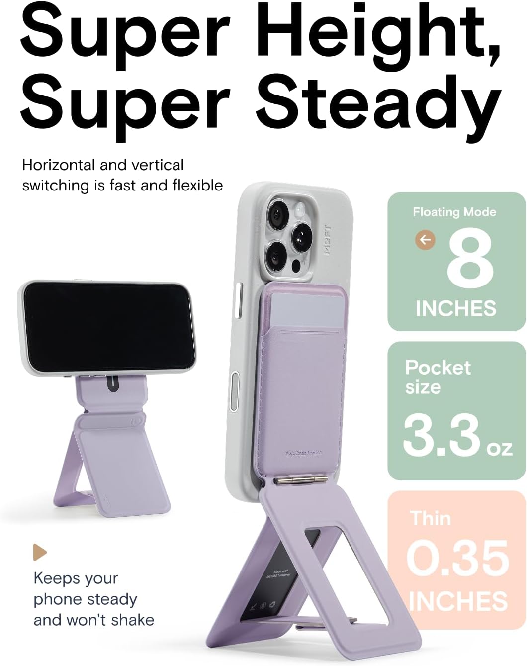 - 3-in-1 & Eco-friendly: MOFT phone tripod wallet is a versatile everyday carry that combines a phone tripod, phone stand, and magnetic phone wallet. Crafted with the pioneering water-based MOVAS Vegan Leather, it’s not only smooth to the touch but also eco-friendly, saving water during the manufacturing process. Transform it into an 8" phone tripod stand in a second, making it perfect for capturing stable photos and videos.