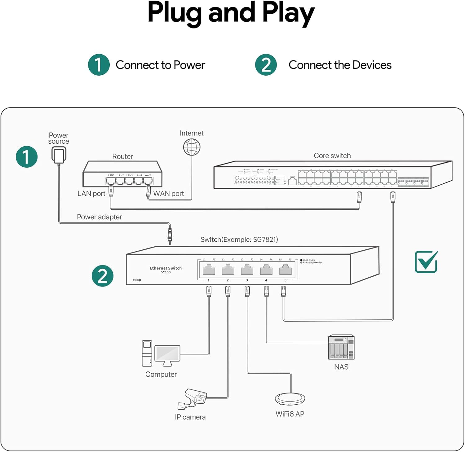 - Included Components : 1 x 5-Port 2.5G Network Switch, 1 x Power Adapter, 1 x Quick Installation Guide